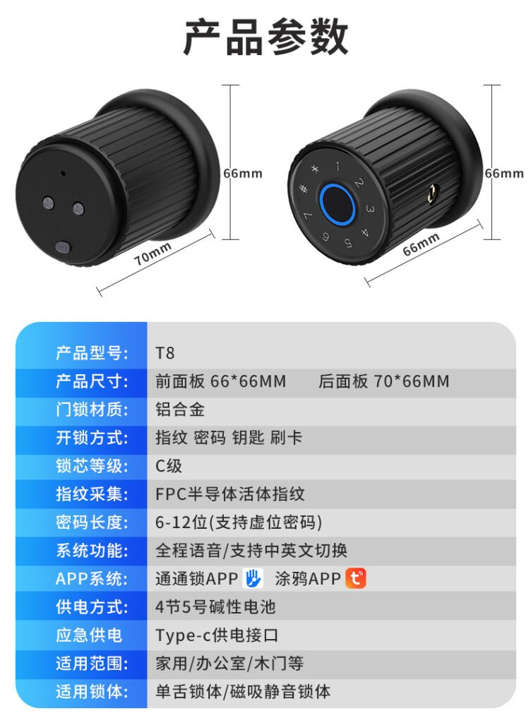 Door Lock / Fingerprint Deadbolt Door Lock / Fingerprint Deadbolt Lock / Mobile App Door Lock / Mobile App Smart Lock / Smart Deadbolt Door Lock / Smart Deadbolt Lock/Built-in WiFi/Palm Vein Recognition/Digital Door Viewer/Suitable for Wood door, Steel door, Aluminum door
